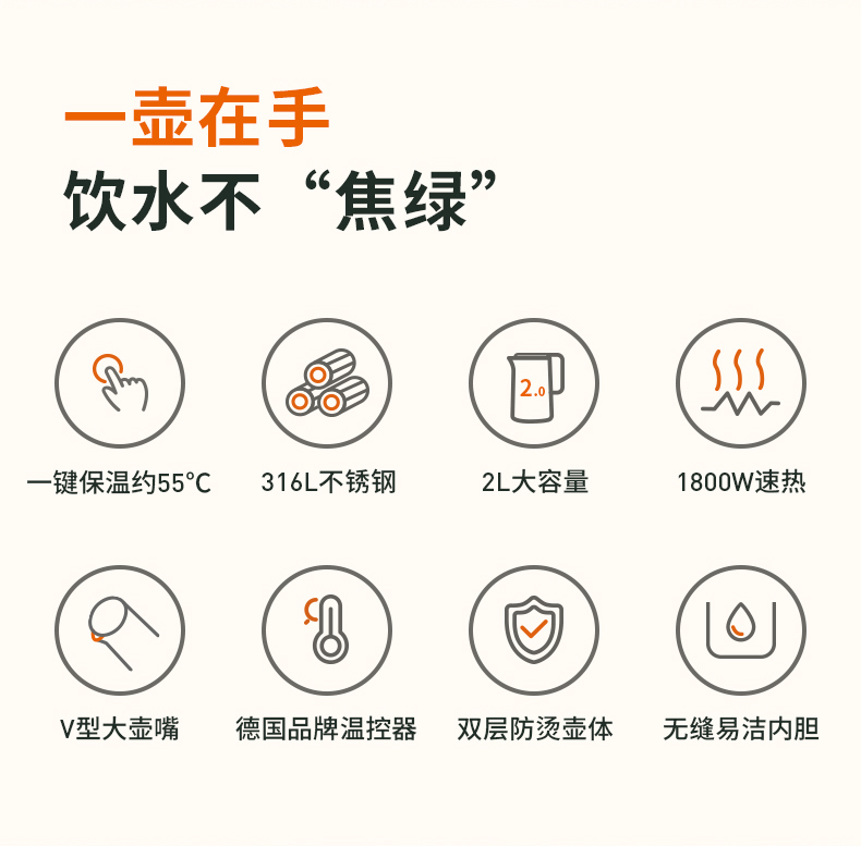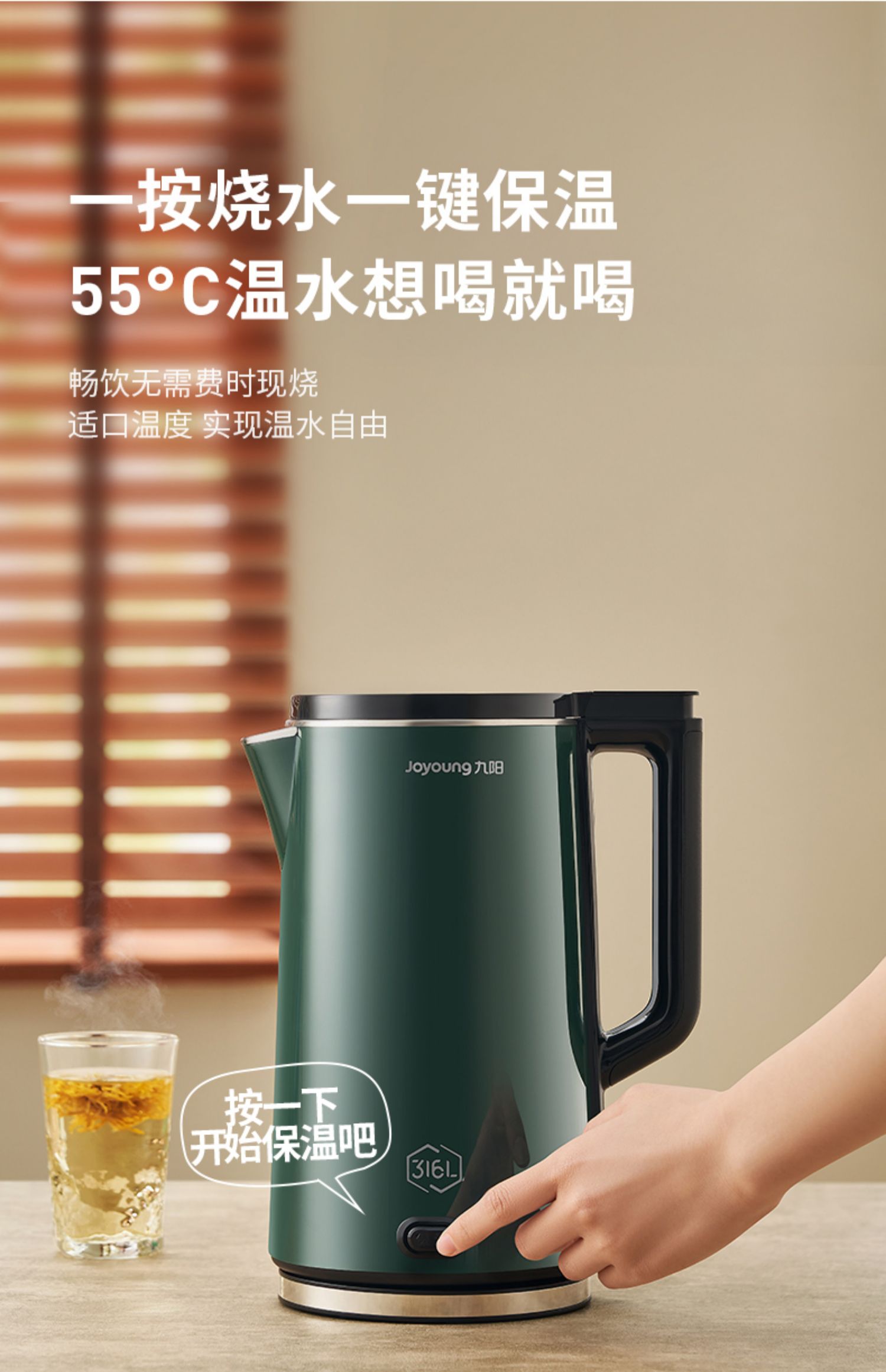 九阳2L电热水壶家用保温烧水壶自动断电开水煲恒温不锈钢电水壶