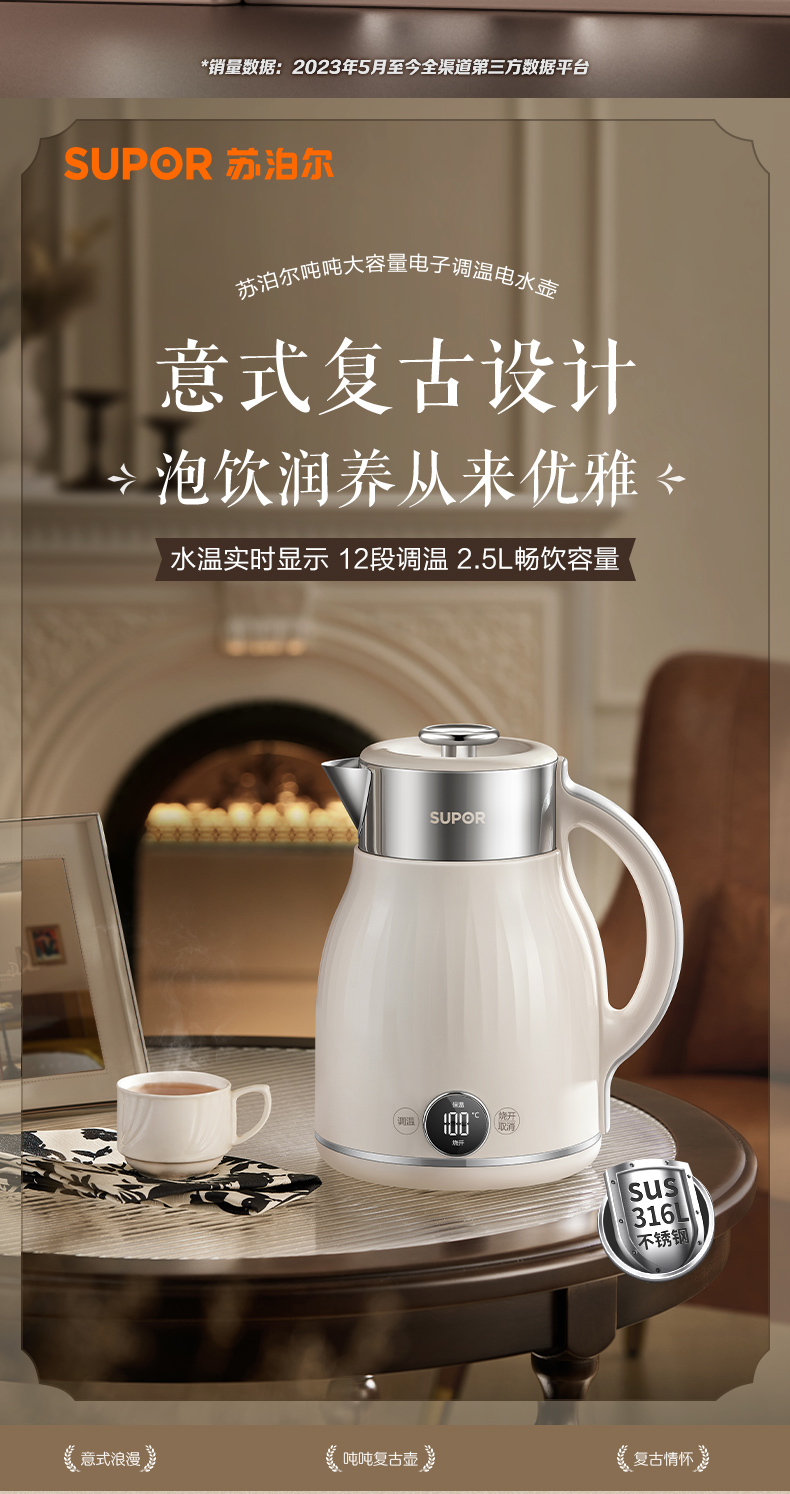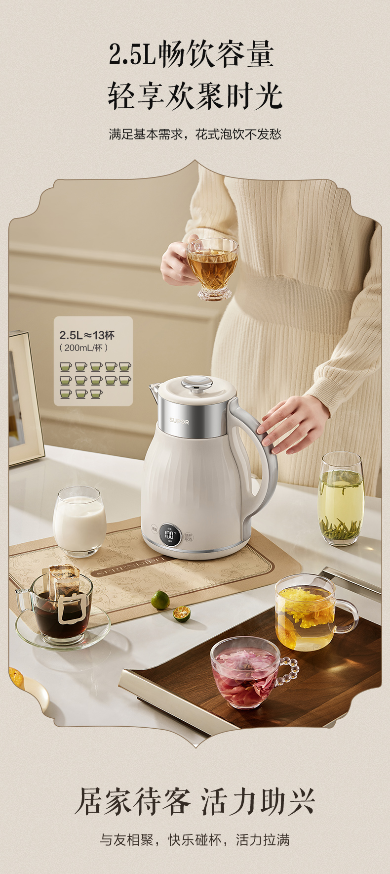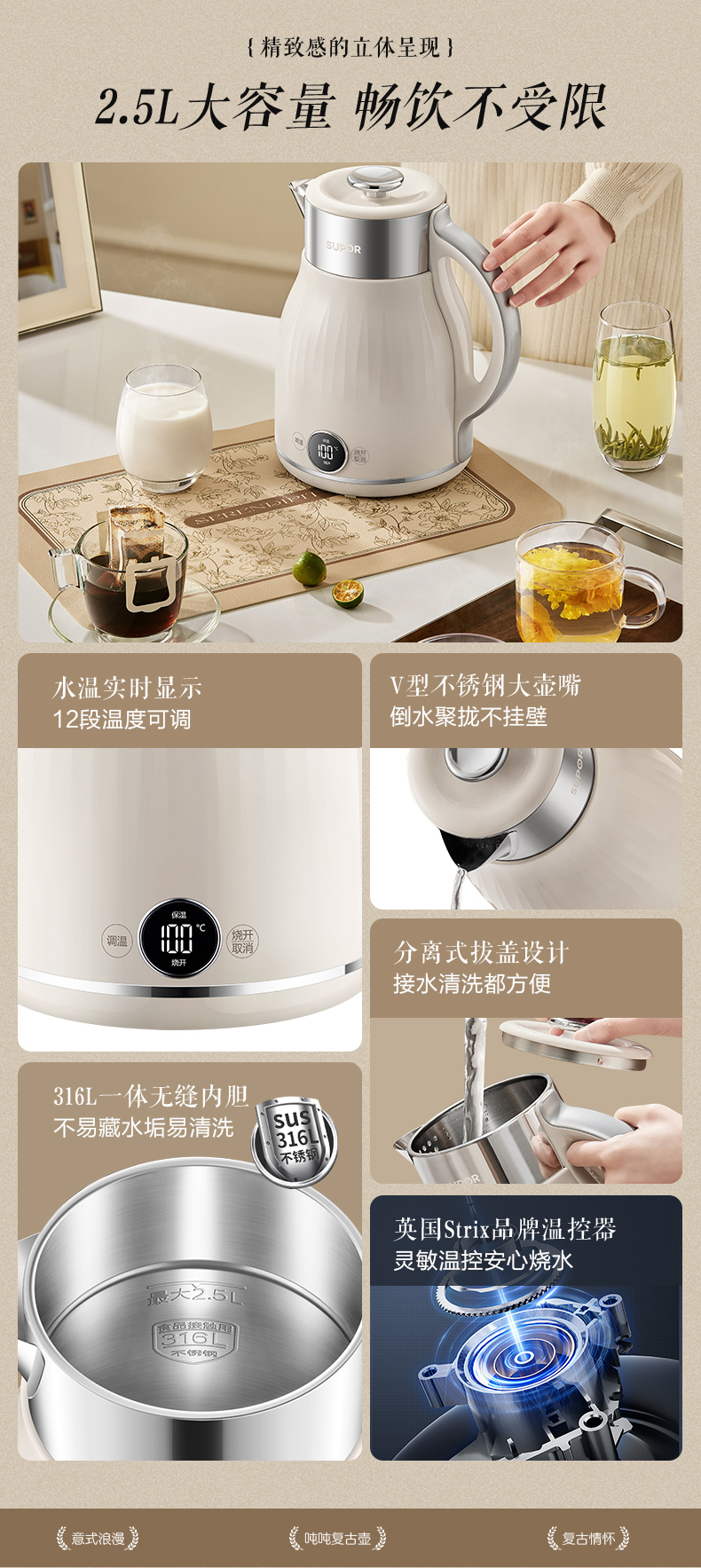 苏泊尔电热水壶家用大容量自动恒温保温一体不锈钢烧水壶煮开水壶