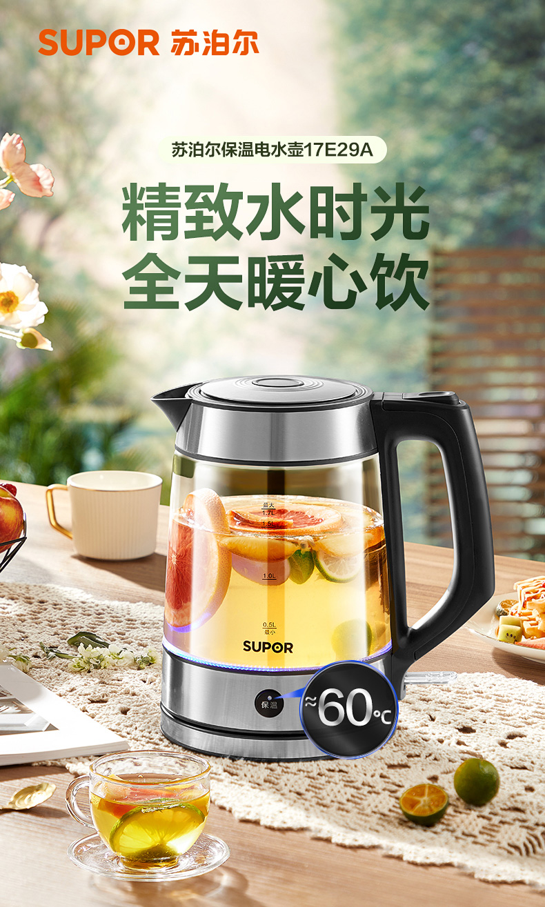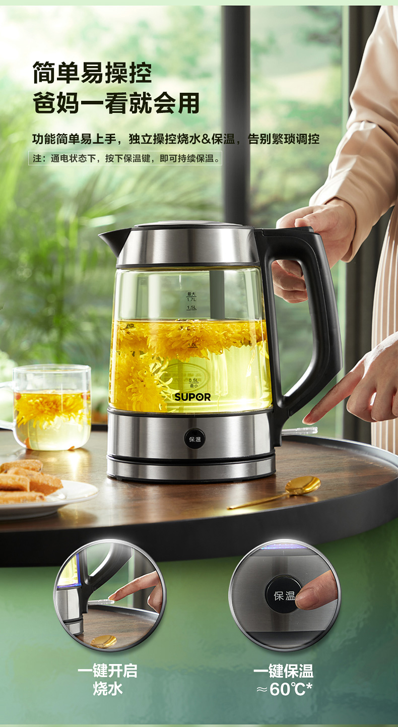 苏泊尔电热水壶家用大容量智能保温烧水一体泡茶热水瓶烧开水壶