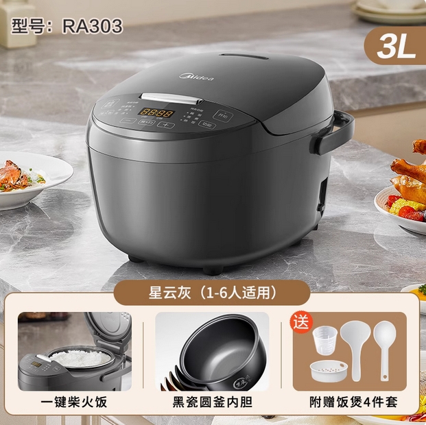 美的电饭煲家用3L电饭锅迷你小型1-2人4智能多功能电压力锅烹饪机