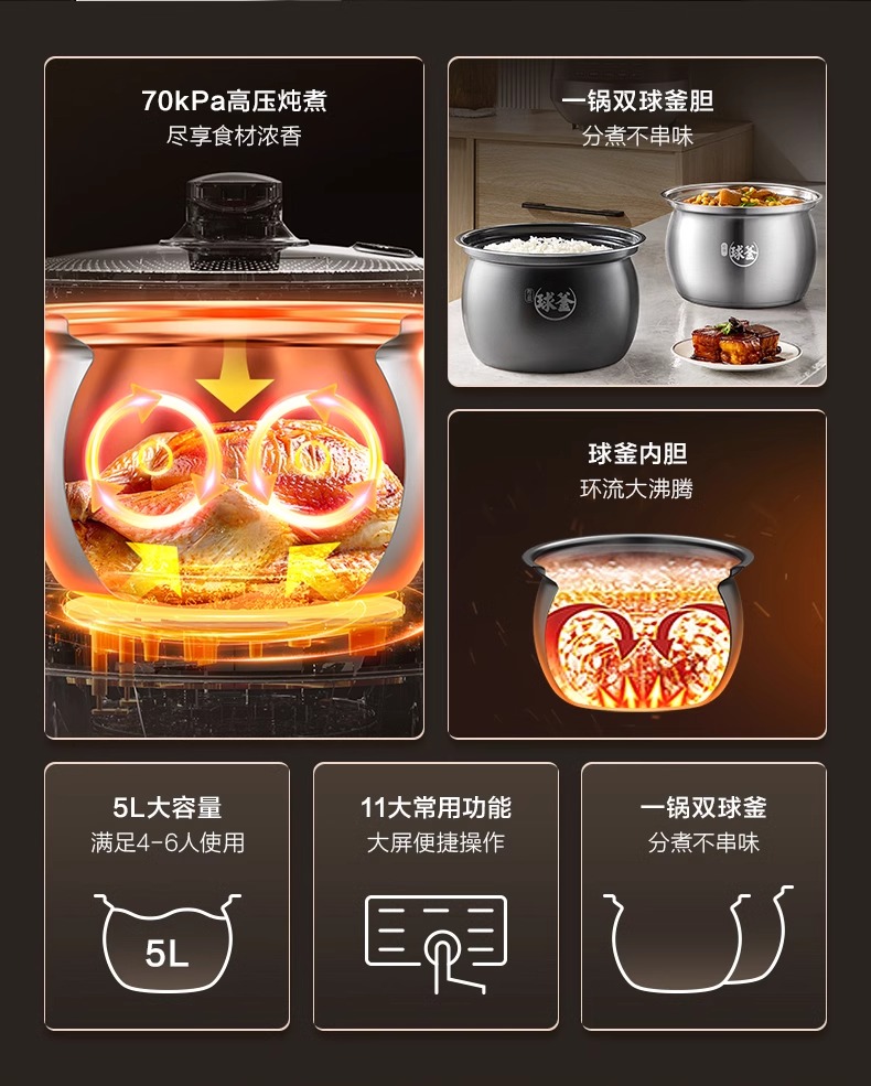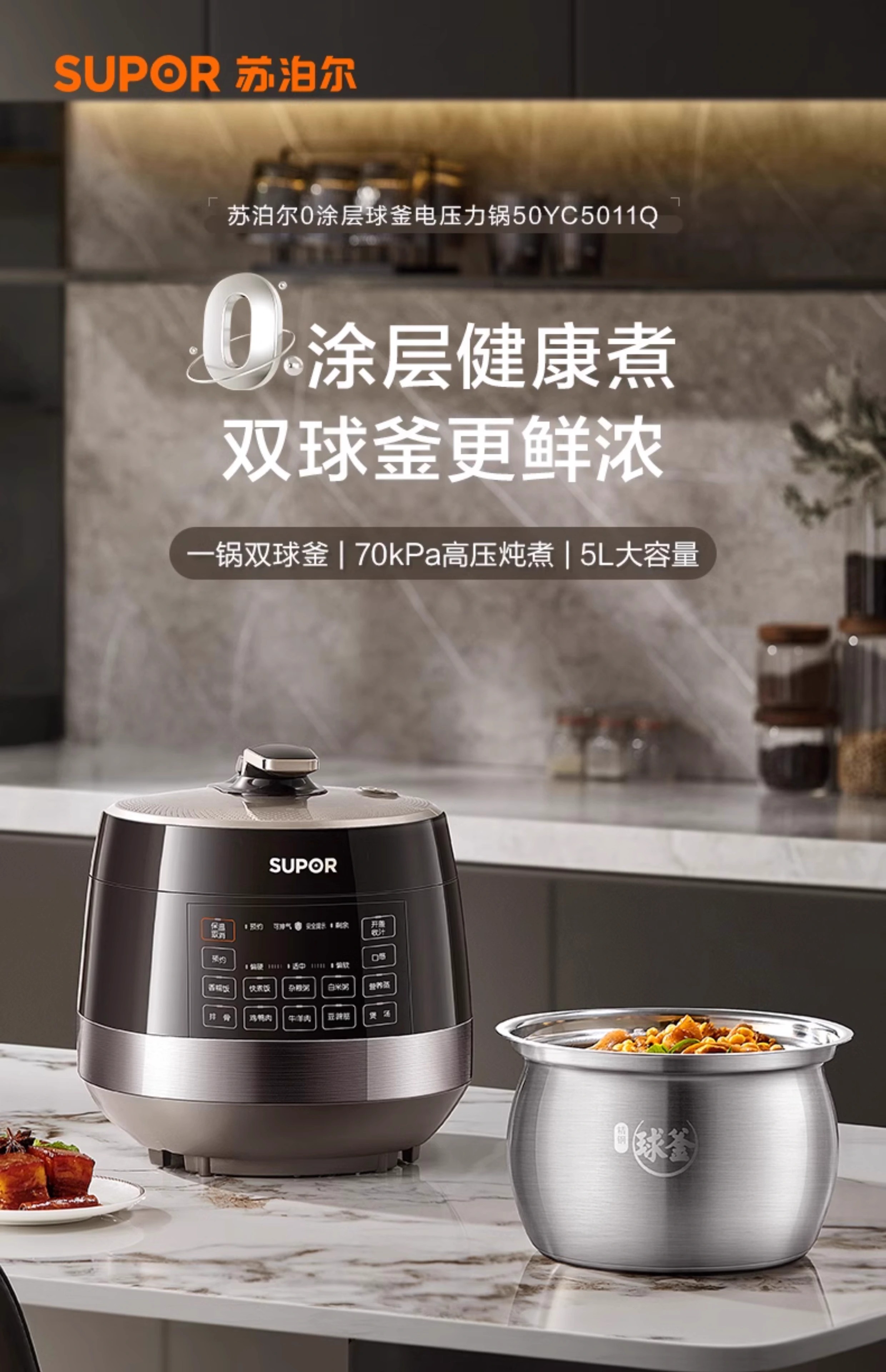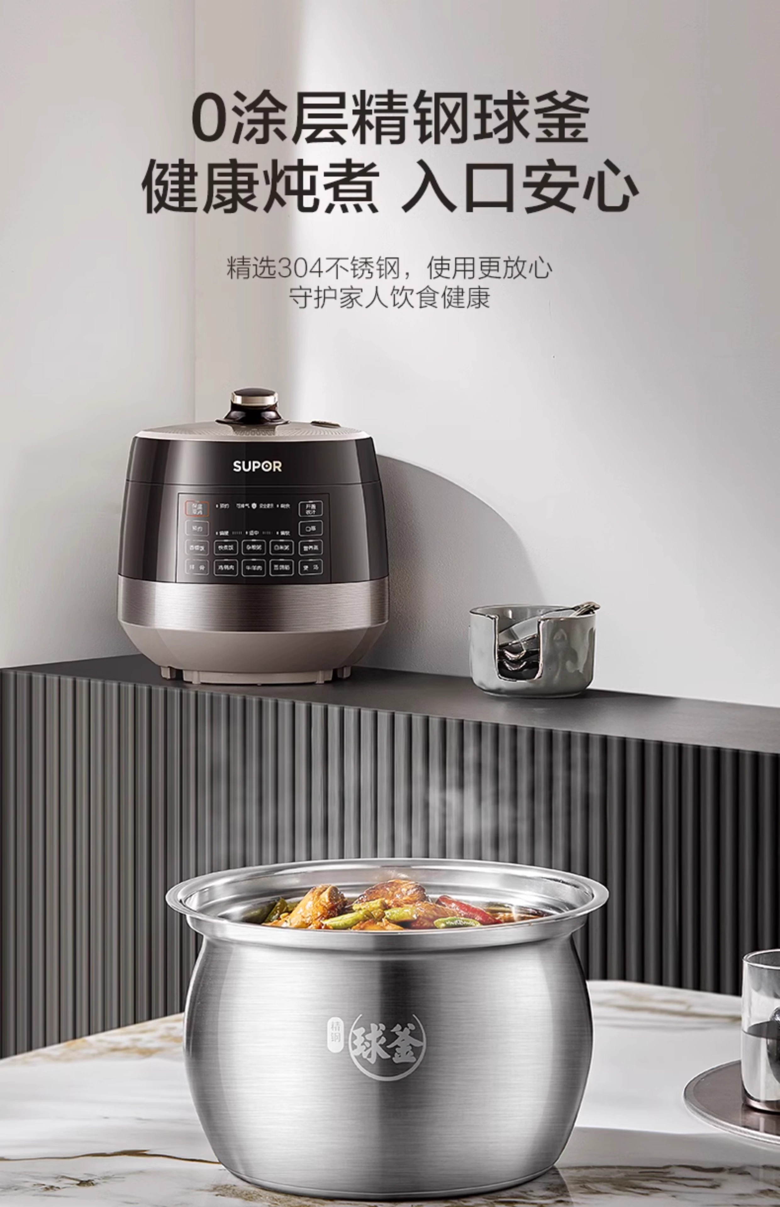 苏泊尔0涂层电压力锅家用2025新款高压锅官方旗舰店正品高压饭煲