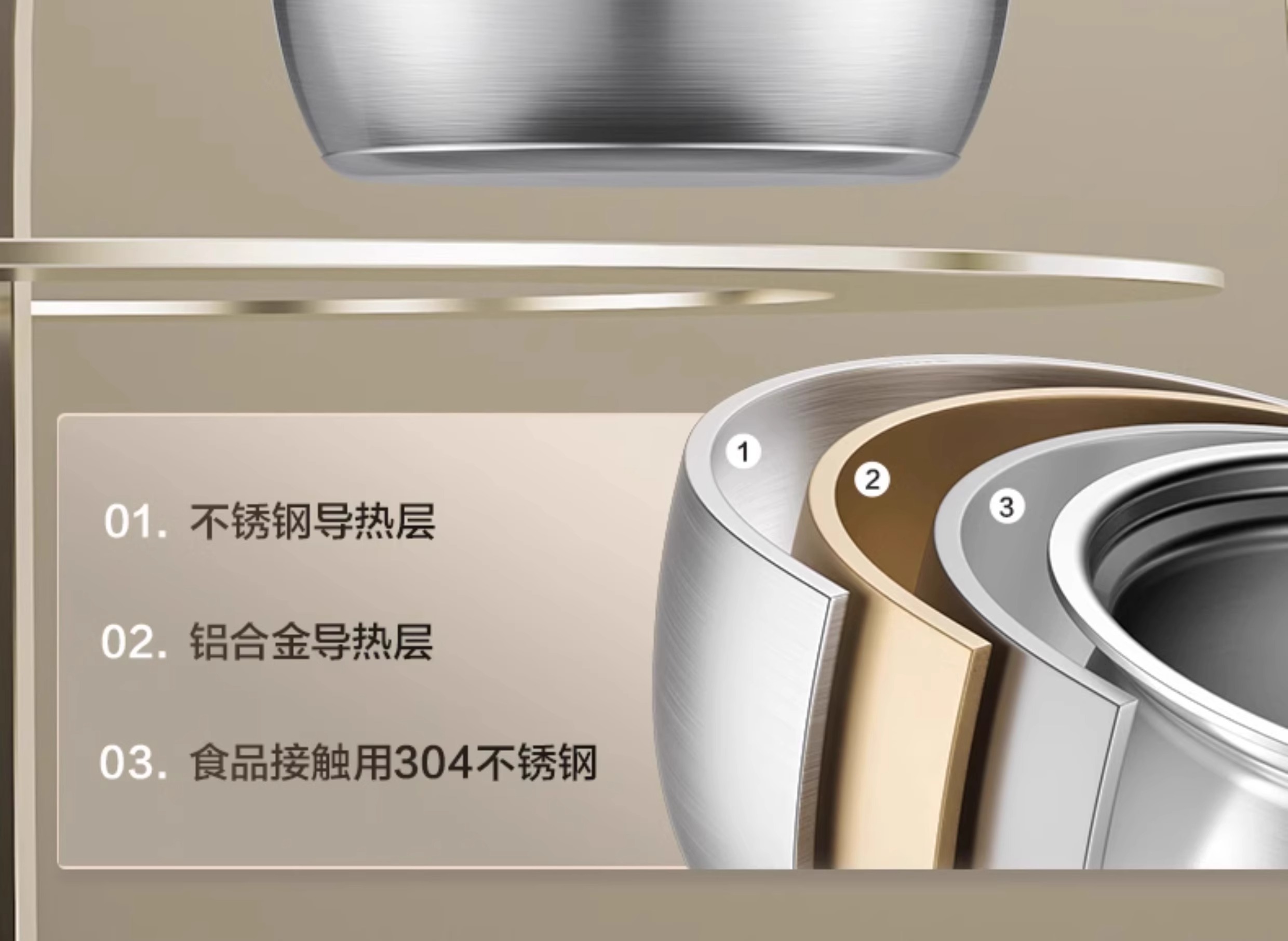 香槟金 【0涂层不锈钢内胆+5L大容量】