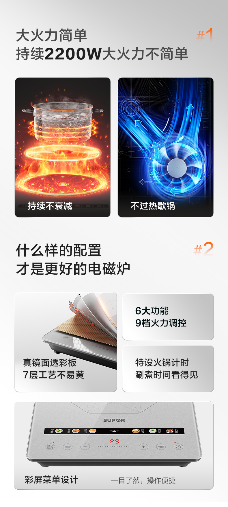 苏泊尔电磁炉2025新款家用2200W大功率多功能爆炒大火力炒菜火锅