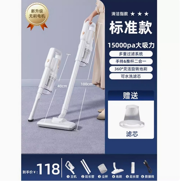无线吸尘器家用大吸力小型手持吸拖一体超静音强力猫毛吸尘机2298
