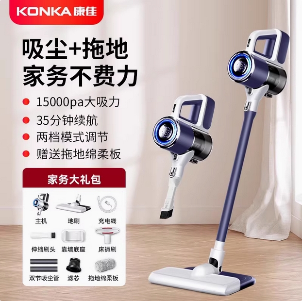 康佳吸尘器家用大吸力手持小型无线吸尘机强劲宠物毛吸拖地一体G